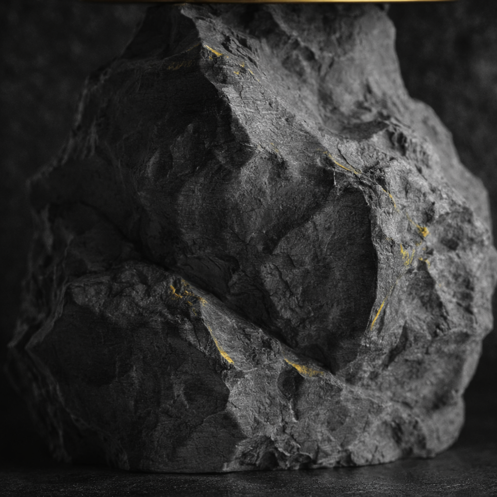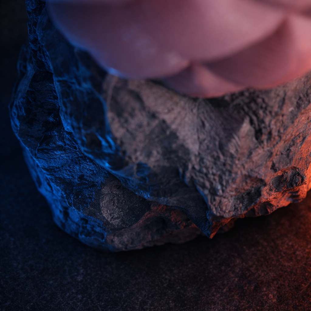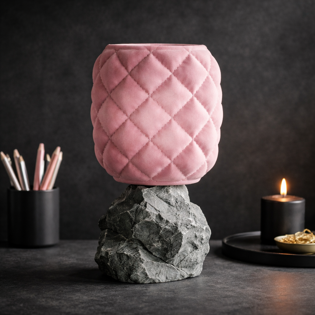 Die massive, steinartige Basis sorgt für Ruhe und Stabilität, während der weich geformte obere Teil eine warme, einladende Wirkung entfaltet 🪨🤍